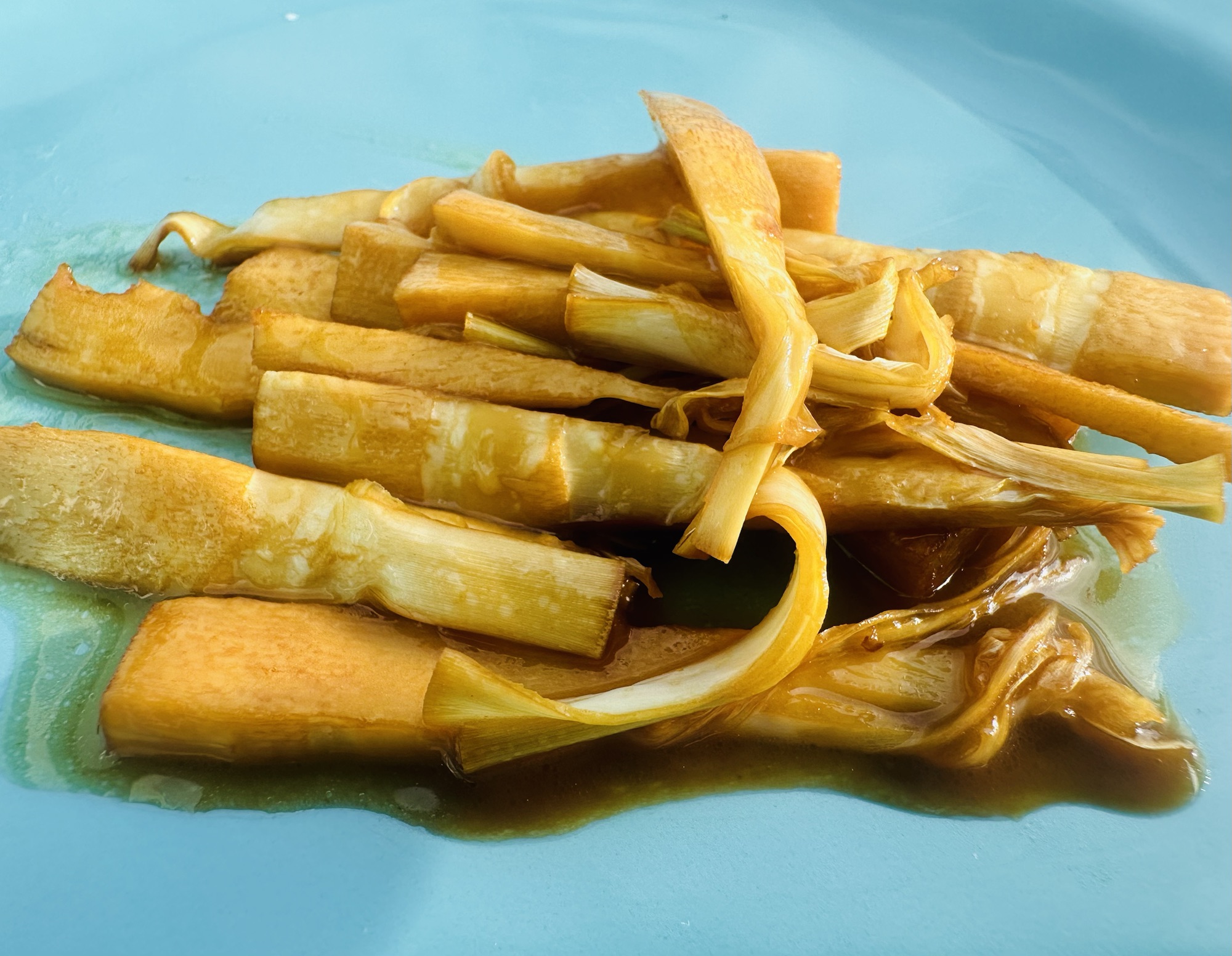 - Boiled bamboo shoots, cut in fourths lengthwise
